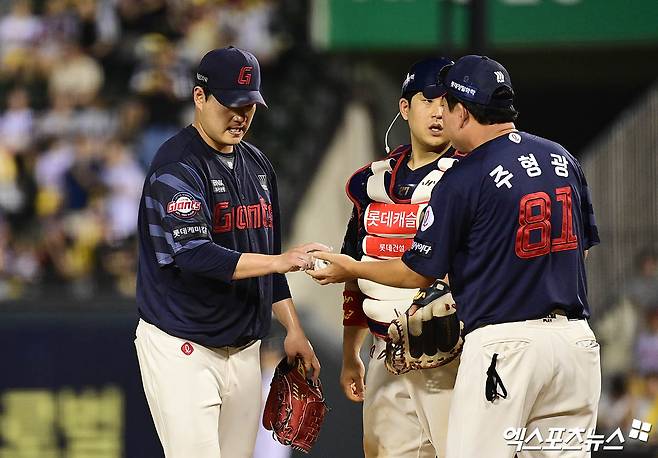 3일 경기를 앞두고 만난 김태형 감독은 "슬라이더나 변화구 카운트 잡는 게 조금씩 빠진다. 볼 카운트를 뺏기면서 본인이 타자와의 싸움에서 몰리는 것"이라며 벨라스케즈의 문제점을 진단했다.