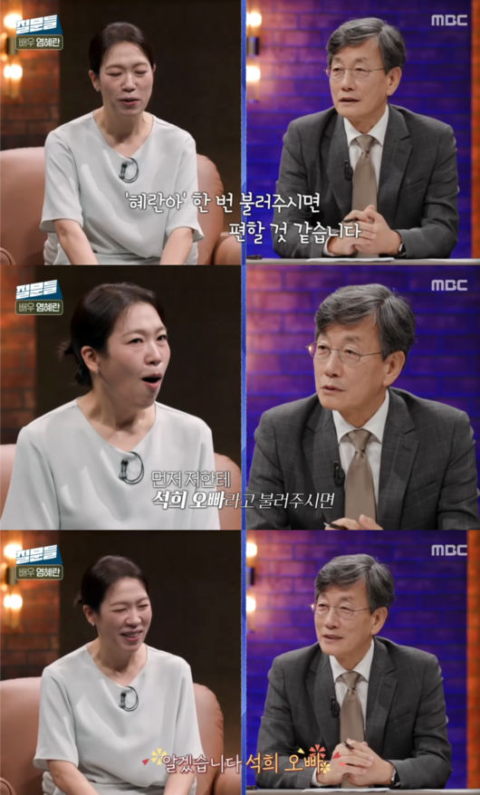이어 손석희는 “어떻게 하면 편해질 수 있겠냐”고 물었고, 염혜란은 “그냥 ‘혜란아’라고 불러 달라”고 요청했다. 이에 먼저 “석희 오빠”라고 다정하게 부른 염혜란을 향해 손석희는 “혜란아, 우리 오늘 잘해보자”라고 스윗하게 응수하며 훈훈한 분위기를 자아냈다.