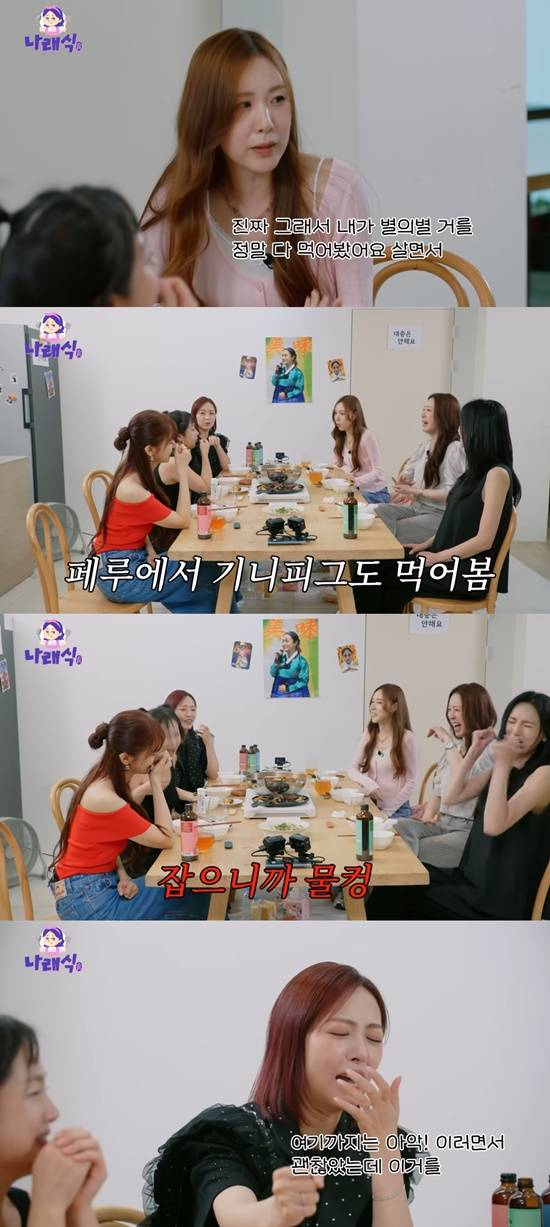 간미연은 “나는 속상한 게 다들 안 먹더라. 그래서 내가 별걸 다 먹었다”며 “심은진 언니와 페루에서 기니피그도 먹었다. 제가 먼저 먹어보고 괜찮으면 멤버들이 먹었다”고 털어놨다.