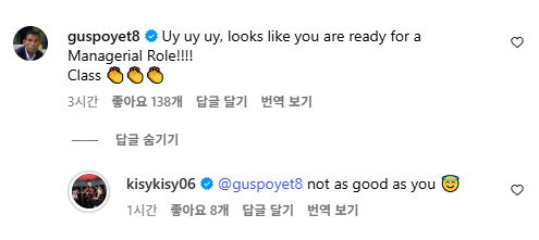 기성용은 포옛 감독의 댓글에 "감독님만큼은 아니죠"라며 재치있게 받아쳤다. 두 사람이 얼마나 가까운 사이인지 알 수 있는 댓글과 답글이었다.