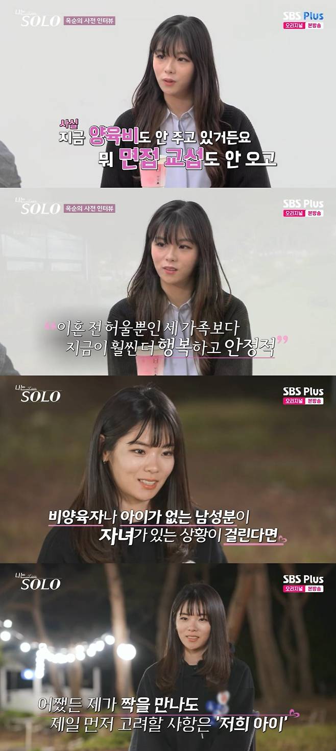이어 28기 옥순은 "지금까지 사과를 못 받고 지금 양육비를 안 주고 있다. 면접 교섭도 안 오고 아예 연락을 안 하고 지내고 있다"라며 현재 7살 딸을 홀로 양육 중이라고 말했다.