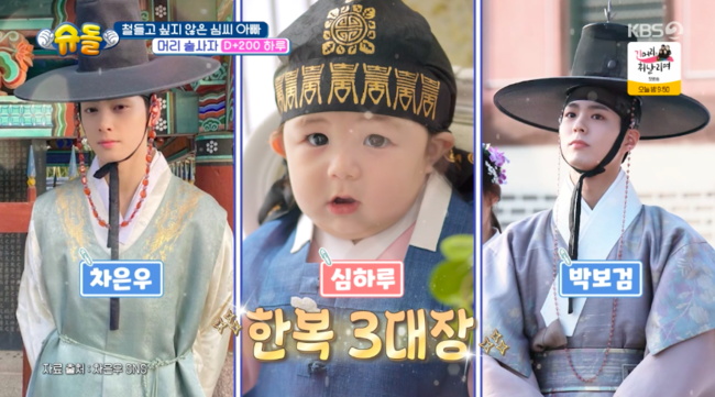 무엇보다 하루는 복건에 버선까지 풀 장착하며 박보검과 차은우를 잇는 꽃도령으로 완벽 변신해 눈길을 끌었다. 최지우는 “우리 하루도 한 외모 한다”라고 했고, 심형탁은 “저렇게만 컸으면 좋겠다”라고 웃었다.