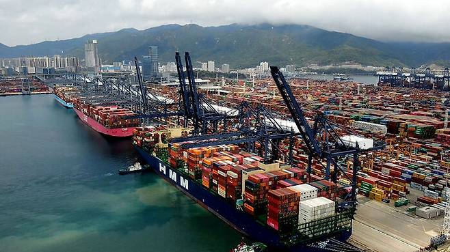 ▲ 항구 접안한 컨테이너선들
