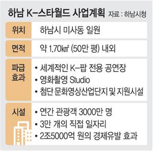 경기 하남시가 추진하는 K-스타월드 조성사업이 새 정부의 문화정책과 맞물리며 한층 더 속도를 내고 있다. 4일 문화일보 취재를 종합하면, 정부가 콘텐츠 산업을 국가 전략산업으로 육성해 ‘글로벌 빅5 문화강국’ 도약을 선언하면서, K-팝 전용 공연장과 세계적 영화촬영 스튜디오를 갖출 K-스타월드가 그 대표 모델로 주목받고 있다.