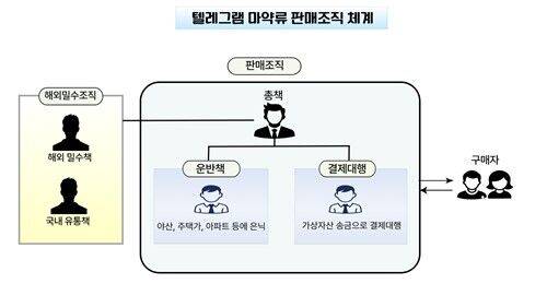 조사 결과 A 씨 등 총책 6명은 사무실 운영비용 지출 등 전반적인 관리업무, 마약류 판매 업무, 범죄수익 현금화, 운반책 모집·관리, 밀수입 마약류 매수, 구매자 관리 등 세부적인 역할을 분담해 왔습니다.