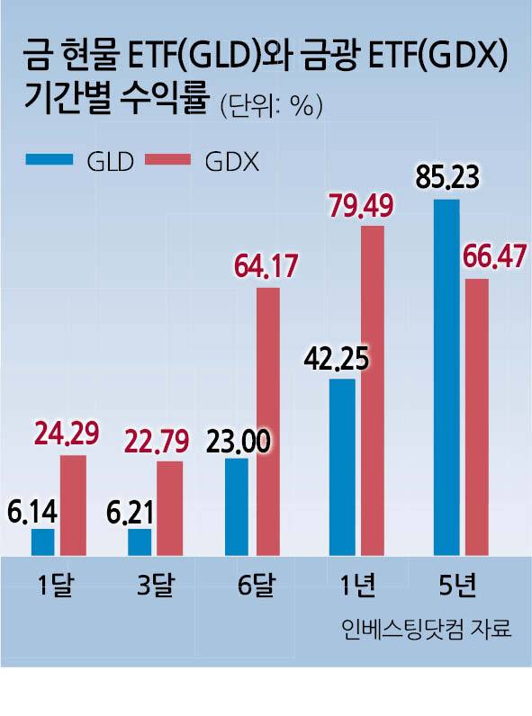 금광기업들의 마진이 확대로 이익이 개선되자 금광 ETF가 금 자체보다 더 큰 상승세를 기록한 것이다.