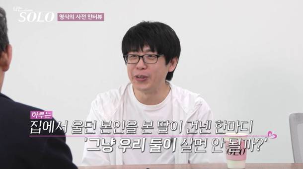 뒤이어 입성한 영식은 '나는 SOLO' 팬인 고2 딸의 응원으로 여기에 나오게 됐다며 "짧은 연애 끝에 혼전임신으로 결혼을 했고, 계속 부딪치다가 7년 만에 이혼했다"고 고백했다. 그러면서 영식은 "아이 때문에 버텼다"며 "사춘기 때 멀어진 딸과 오랜 노력 끝에 지금은 친구처럼 지낸다"고 해 먹먹함을 안겼다.