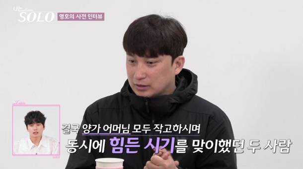 다음으로 등장한 영호는 아이스하키 등을 섭렵한 '강철 남자'임을 어필한 뒤, "양가 어머니의 건강 문제로 급히 결혼을 준비했다가 3년간의 사실혼 끝에 헤어졌다"고 털어놨다.