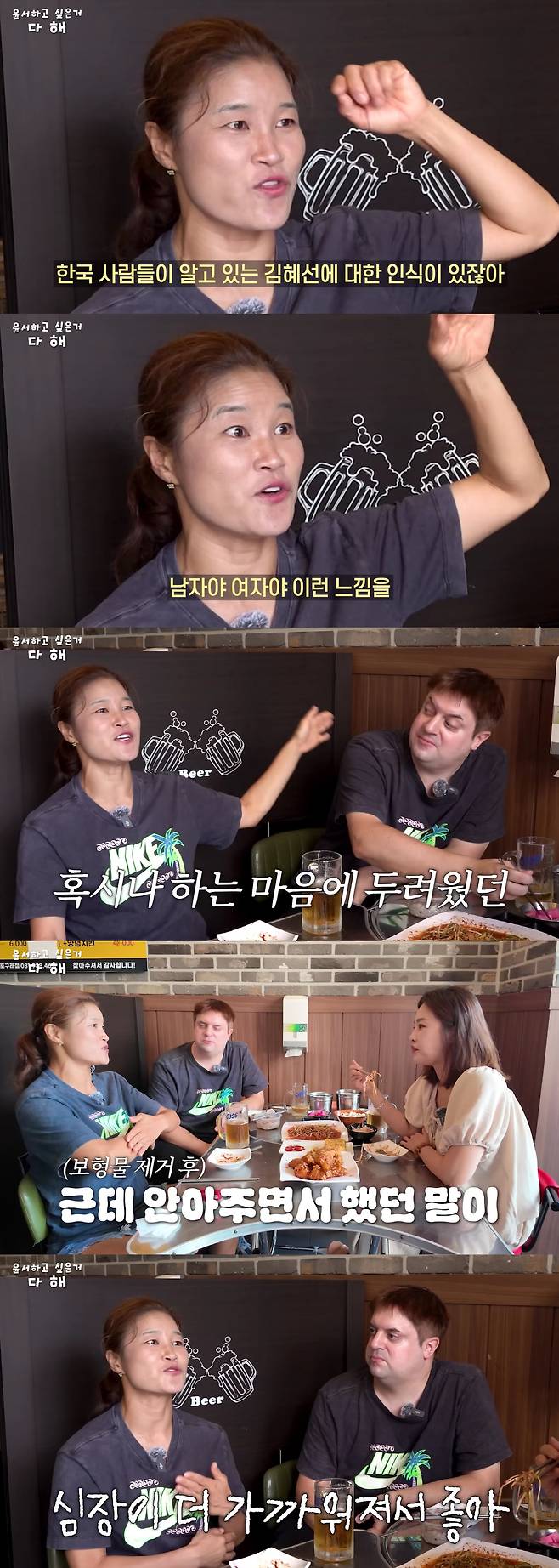 김혜선도 "원래는 독일에서 살 계획이었다. 예전에 일했던 독일 식당에서 식당 하나를 넘기겠다고 했었는데, 아무리 생각해도 독일에서 일해도 행복할 것 같지 않았다. 남편이 정말 좋은 점은 대화를 많이 한다는 것"이라며 "그때도 남편에게 '여기 정말 좋긴 한데, 살기는 힘들 것 같아. 한국에 돌아가서 다시 연예인 생활하고 싶다'고 솔직하게 말했다"고 회상했다.