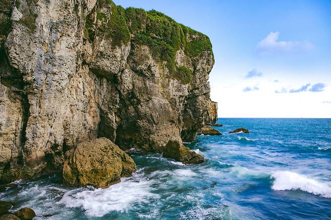 좀 더 넓은 각도로 변화를 관찰하기 위해 치호우 포대(Cihou Fort)를 선택했다. 1870년대 가오슝 항구를 방어하는 용도로 지어진 붉은색 포대는 지금은 전망대로 활용되고 있다. 여러 색상을 지닌 치진섬과 푸른 바다를 한눈에 담을 수 있다. 포대 아래 또 다른 군사작전 공간인 터널은 치진 별하늘 터널이 돼 낭만적인 분위기를 자아낸다. 터널을 빠져나오면 치진해협과 높이 솟은 석회암벽 앞에 서는데, 흡사 무인도에 떨어진 것처럼 우렁찬 파도 소리만 들린다.