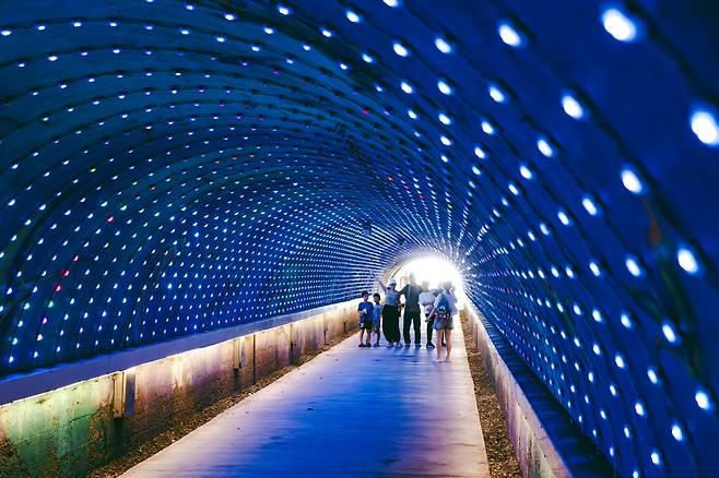 좀 더 넓은 각도로 변화를 관찰하기 위해 치호우 포대(Cihou Fort)를 선택했다. 1870년대 가오슝 항구를 방어하는 용도로 지어진 붉은색 포대는 지금은 전망대로 활용되고 있다. 여러 색상을 지닌 치진섬과 푸른 바다를 한눈에 담을 수 있다. 포대 아래 또 다른 군사작전 공간인 터널은 치진 별하늘 터널이 돼 낭만적인 분위기를 자아낸다. 터널을 빠져나오면 치진해협과 높이 솟은 석회암벽 앞에 서는데, 흡사 무인도에 떨어진 것처럼 우렁찬 파도 소리만 들린다.