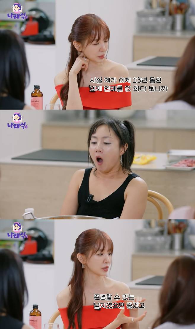지난 3일 베이비복스 윤은혜는 박나래의 유튜브 채널에 출연해 이상형과 연애관을 솔직하게 밝혔다.
