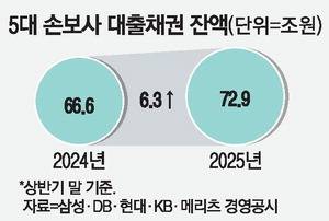 4일 삼성화재·DB손해보험·현대해상·KB손해보험·메리츠화재 등 5대 손보사에 따르면 올해 상반기 대출채권 잔액은 72조9361억원으로 전년 동기와 비교해 6조3096억원 늘어났다. 증가율은 9.4%에 달한다. 같은 기간 이들 보험사가 올린 보험순익이 30% 넘게 감소한 것과 대조적이다.
