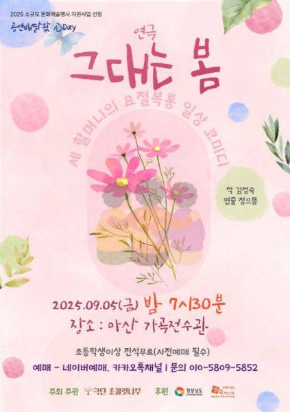 극단 관계자는 "'그대는 봄'은 단순한 연극을 넘어 우리의 가족과 이웃의 삶을 비추는 작품"이라며 "창원 시민들과 함께 웃고 공감하는 시간이 되기를 바란다"라고 전했다.