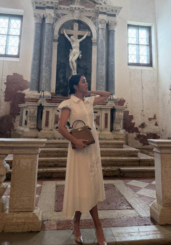 이민정은 최근 자신의 계정에 이탈리아 베니스에서 찍은 사진을 게재했다. 이민정은 최근 영화 제81회 베니스 국제영화제 경쟁부문에 초청된 영화 '어쩔 수가 없다'에 출연한 이병헌 내조를 위해 베니스로 함께 향했다. 이민정은 또 다른 주연 배우이자 절친인 손예진이 찍어준 사진을 게재하며 우정을 과시했다.