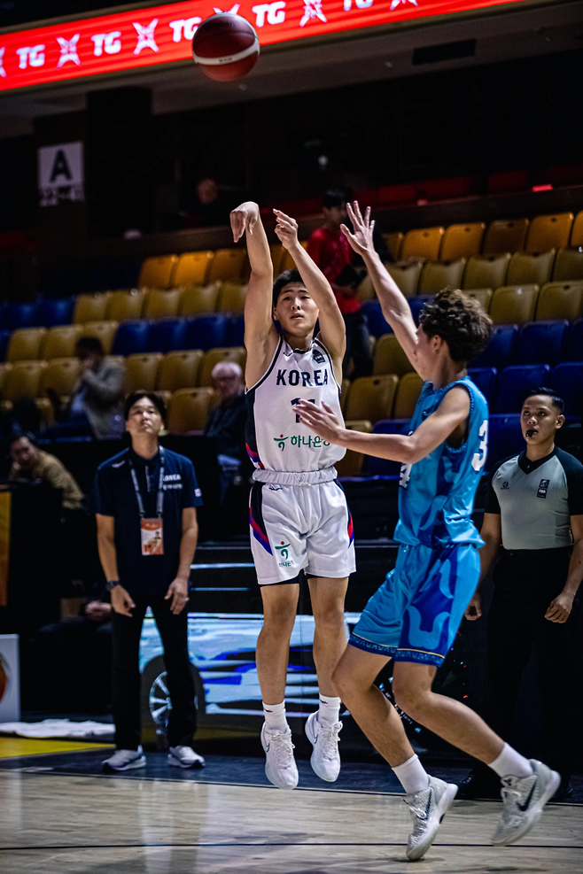 한국은 이번 대회 들어 처음으로 베스트5에 변화를 줬다. 박태준(182cm, G)-이승현(192cm, G)-민승빈(196cm, F)-박범윤(190cm, F)과 함께 추유담(183cm, G)이 선발 라인업에 이름을 올린 것.