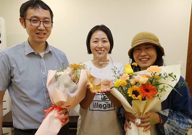 | ▲ 2025년 상반기 올해의 뉴스게릴라상을 수상한 환경생태 현장르포팀 김강민, 정윤영, 변정정희 시민기자. |