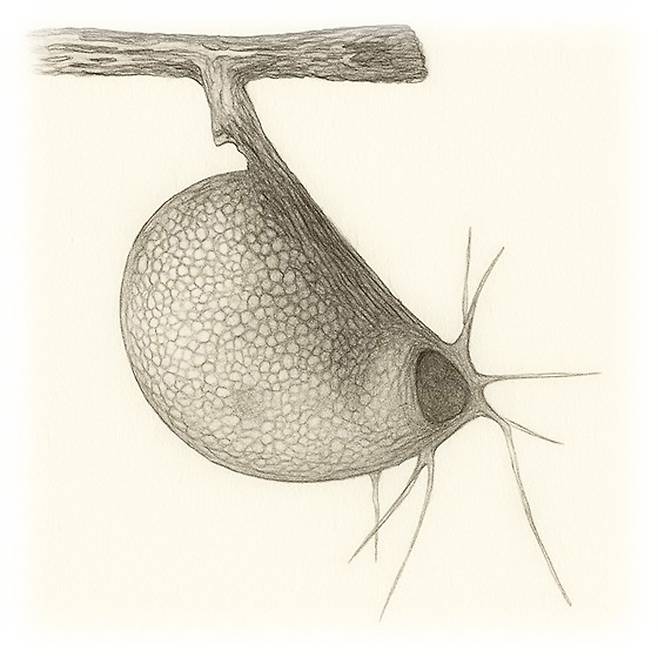 자주땅귀개는 통발과에 속하는 식물로, 습지에서 살아가며 땅속의 미세한 생물을 잡아먹는데 키는 8㎝ 남짓에 불과하다. 뿌리 대신 흰색의 가느다란 줄기가 사방으로 퍼져 나가며, 그 끝마다 ‘포충낭’이라 불리는 작은 사냥 주머니가 달려 있다. 일반적인 식충식물이 눈에 띄는 잎이나 덫으로 곤충을 유인하는 것과 달리, 자주땅귀개는 지면 아래에서 조용히 사냥을 펼친다. 이때 핵심 역할을 하는 것이 바로 ‘포충낭’이다.