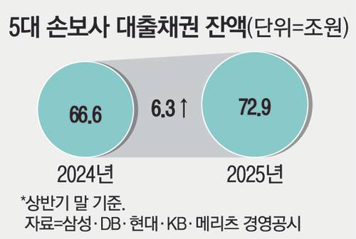 4일 삼성화재·DB손해보험·현대해상·KB손해보험·메리츠화재 등 5대 손보사에 따르면 올해 상반기 대출채권 잔액은 72조9361억원으로 전년 동기와 비교해 6조3096억원 늘어났다.