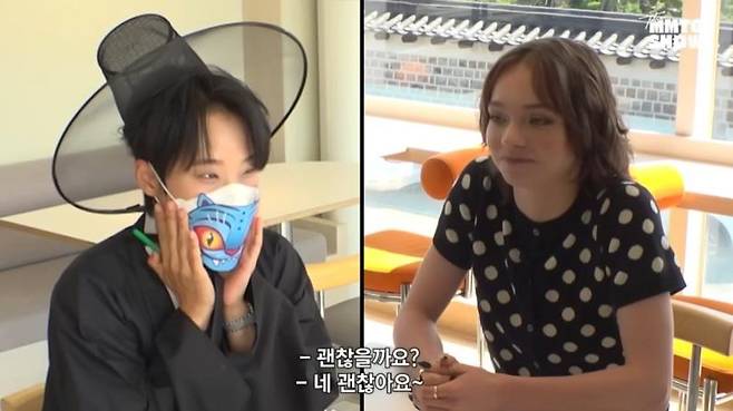 엠마마이어스를 만난 재재는 감기 기운으로 인해 '케이팝 데몬 헌터스'의 더피 마스크를 쓴 채 인사를 나눴다. 재재는 "세븐틴 팬이 된 게 17살? 18살?이라고"라며 운을 뗐다. 이에 엠마 마이어스는 "아마 15살일 거다"라고 말해 놀라움을 자아냈다.
