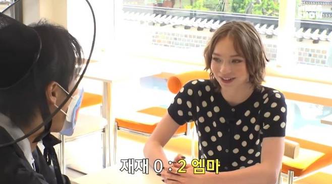 하지만 곧바로 위기가 찾아왔다. 이번에는 재재가 아는 그룹인 듯 잔뜩 흥분해 힌트를 줬지만, 엠마는 전혀 눈치를 채지 못했다. 정답은 재재가 속한 그룹인 재쓰비였다. 그러자 엠마는 "3세대가 아니잖냐"라고 반박해 웃음을 자아냈다.