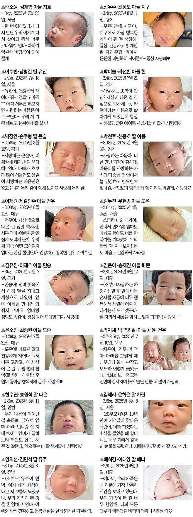 온 가족에게 기쁨을 안겨 준 아기의 탄생을 알려주세요. 홈페이지 주소 입력창에 아가야안녕.com이라고 입력하면 됩니다. 매일유업 육아 정보 사이트 매일아이(maeili.com)를 통해서도 접속할 수 있습니다. 추첨을 통해 출산 소식과 사진이 지면에 실린 가족에게는 ①케이크 구매권 ②엄마와 아이를 위한 매일두 포인트 3만원 ③출산 소식을 생일 날짜 본지 1면에 담은 PDF 파일 ④조선일보 1개월 무료 구독권을 드립니다. 당첨자 중 한 가족을 선정하여 해당 지면을 고급 프레임에 담아 제공하는 조선일보 리프린트도 제작해 드립니다. 홈페이지에서는 균형 영양식 메디웰 2만원 할인 혜택도 드리고 있습니다.