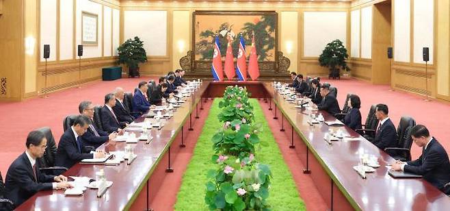 북-중 정상회담은 베이징 인민대회당에서 열렸다. 회담에는 북한은 최선희 외무상과 김덕훈 당 경제부장, 박명호 외무성 부상, 조용원 당 조직비서, 김성남 당 국제부장 등이, 중국은 차이치(蔡奇) 당 중앙정치국 상무위원, 왕이(王毅) 외교부장 등이 배석했다.