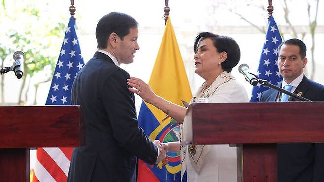 ▲ 마코 루비오 미 국무장관(왼쪽)과 가브리엘라 소메르펠드 에콰도르 외교 장관