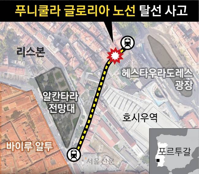 리스본 명물 ‘푸니쿨라’의 비극… 케이블 풀려 탈선, 15명 숨졌다