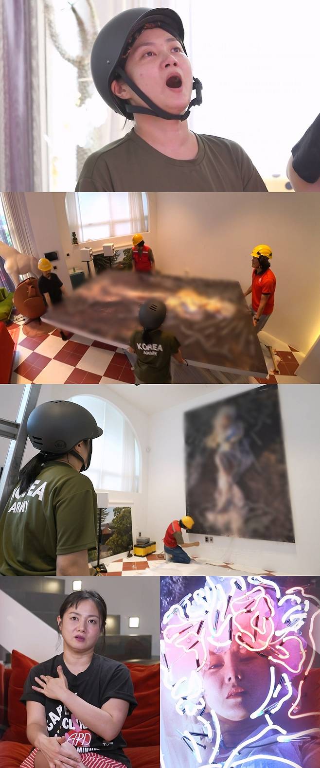 공개된 사진 속에는 초대형 작품의 설치를 위해 고군분투하는 전문가들의 모습이 담겨 눈길을 모은다. 박나래는 "보통 작업이 아니네"라며 헬멧과 장갑을 착용하고 힘을 보태는데, "이걸 누가 가정집에 해요. '국중박'가야 이 크기가 나온다니까요"라며 전문가들도 혀를 내두른다.