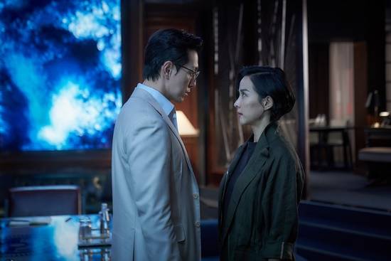 '살인자 리포트' 속에서 조여정과 정성일은 팽팽한 기싸움을 이어가며 긴장감을 더한다.
