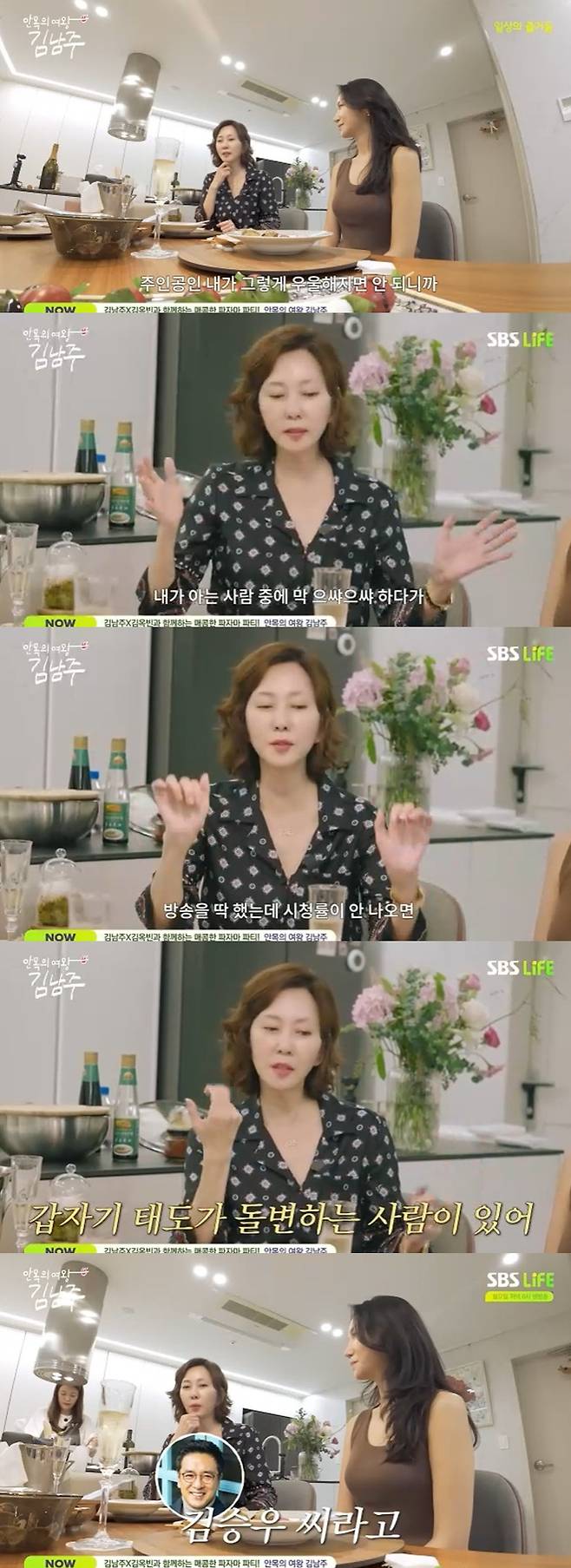 4일 방송된 SBS Plus '안목의 여왕 김남주'에서는 김남주가 배우로서의 마음가짐을 언급, 김승우에 대해서도 이야기했다.