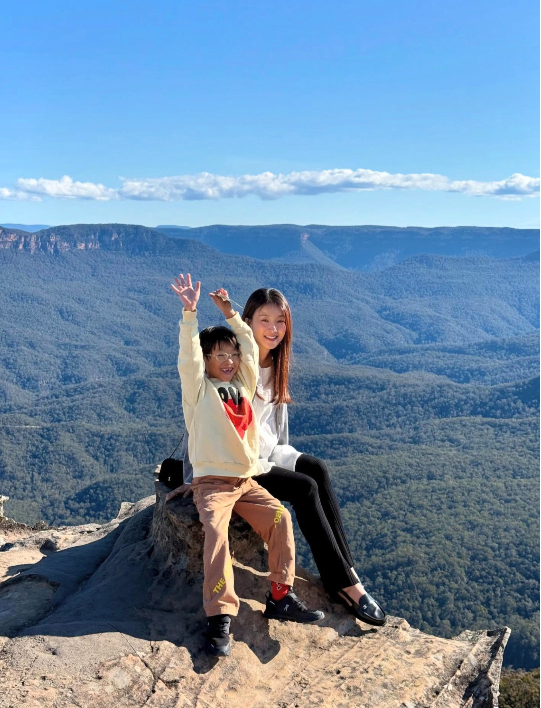 사진 속 이시영은 호주 블루마운틴 절벽 끝자락에 앉아 여유로운 미소를 짓고 있다. 임신 9개월 차임에도 안정된 자세와 환한 표정으로 포즈를 취해 감탄을 자아냈다. 곁에는 아들 정윤 군이 함께해 따뜻한 모자(母子)의 순간을 완성했다.