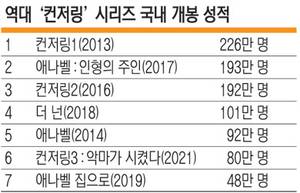 ‘컨저링’ 시리즈는 21세기 가장 성공한 저예산 공포영화다. 제임스 완 감독이 연출한 ‘컨저링1’(2013)은 2000만 달러(약 280억 원)로 제작해 15배가 넘는 글로벌 매출 3억1800만 달러(4400억 원)를 기록했다. 이후 12년 동안 8편의 속편이 나왔고, 각각 악령이 깃든 인형, 수녀 귀신을 등장시킨 ‘애나벨’과 ‘더 넌’ 시리즈가 폭발적 인기를 누렸다.