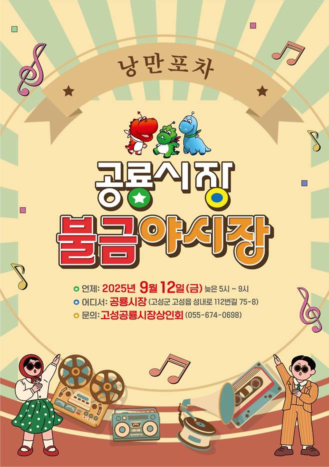 고성군은 9월12일 고성공룡시장에서 제3회 불금야시장을 개최한다. 이번 행사는 ‘속닥속닥 낭만가득 포차’라는 부제 아래, 지역주민과 방문객들에게 색다른 금요일 밤의 즐거움을 제공할 예정이다.
