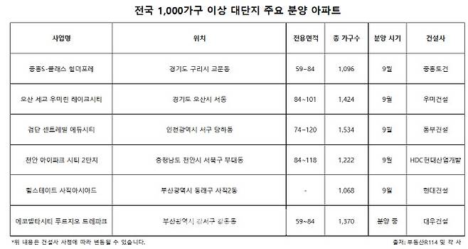 이런 분위기 속 9월에는 전국 곳곳에서 주목할 만한 대단지 분양이 예정돼 있다.
