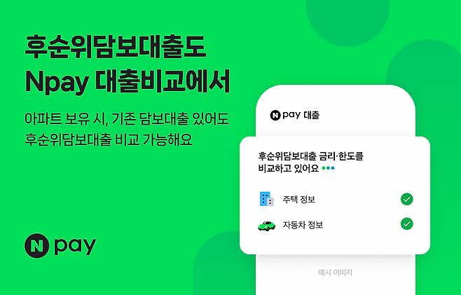 네이버페이(Npay)는 신용대출 비교 서비스에 후순위담보대출 상품을 추가했다고 5일 밝혔다.