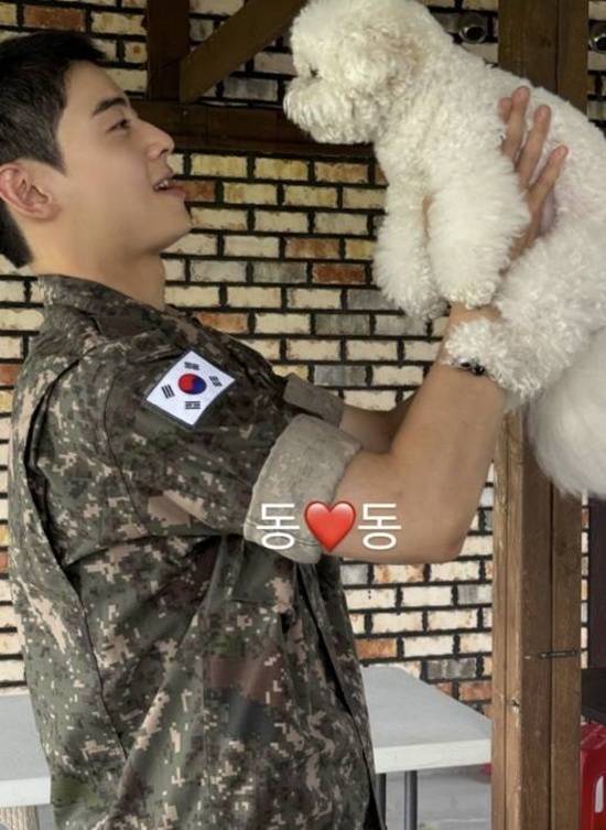 이후 차은우 소속사 판타지오 관계자의 계정을 통해 그가 반려견 동동이와 재회한 모습이 공개되기도 했다. 차은우는 짧게 자른 머리에 군복을 입고 환한 미소로 반려견을 품에 안고 있는 모습이다. 반려견 앞 무장해제된 차은우의 다정한 미소가 훈훈함을 더했다.