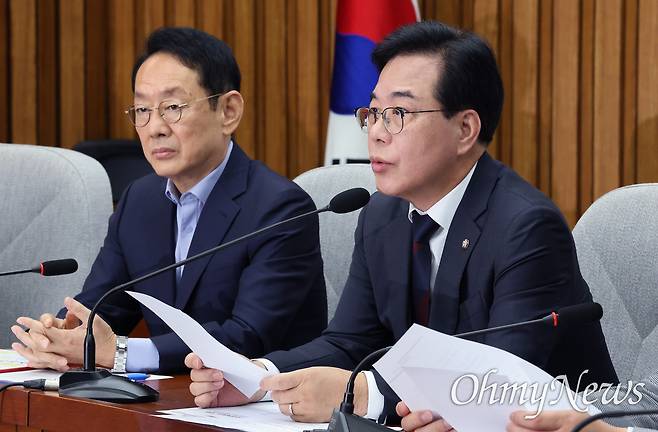 정희용 사무총장은 "민주당의 중심에는 민심과 민생은 없고 오롯이 보복과 공작만 가득한 게 아닌지 의심스럽다"라며 "조은석 특검은 국민의힘을 향한 전방위 과잉수사의 칼날을 드러내며 먼지털이식 압수수색과 언론 플레이에 여념이 없다"라고 직격했다.