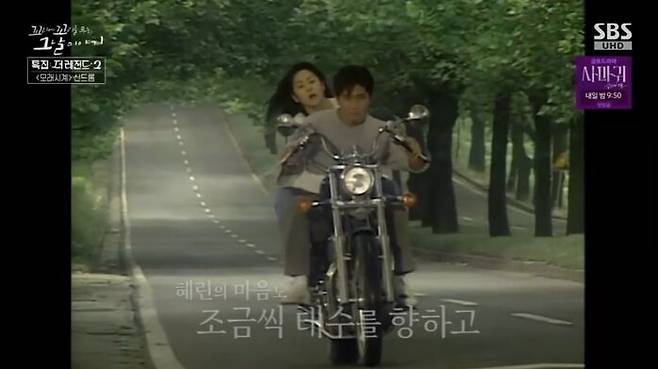 감이 좀 와? '우우우 우~우~, 우우우우~우~' 하는 멜로디가 유명한 드라마. 배우 최민수의 "이렇게 하면 널 가질 수 있을 거라고 생각했어. 넌 내 여자니까!", "나, 떨고 있니?" 하는 명대사가 있는 드라마. 오늘의 이야기, 바로 드라마 '모래시계'야.