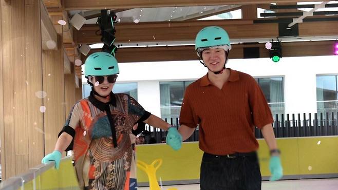 난생처음 타보는 스케이트임에도 여장부 면모로 가열차게 기합을 넣는 이순실과 달리, 홍진희는 스케이팅 초보임을 어필하며 낯선 남자의 손을 잡고 핑크빛 기류를 풍겨 대조되는 모습을 보인다.
