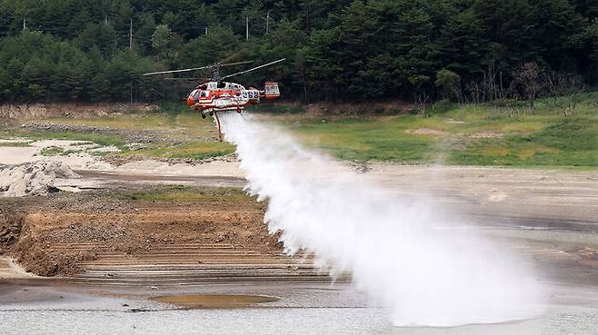 이에 더해 오늘 산림청과 군부대 헬기 10대를 투입해 저수지에서 채수한 물을 오봉저수지에 담수합니다.