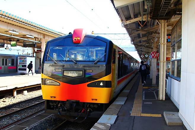 하루 총 6번(편도 3회) 아오모리와 ~아키타를 연결하는 관광열차로 아침 10시 50분 JR 아키타 역을 출발 하는 리조트시라카미 3호를 탑승 합니다. 리조트시라카미는호는 총 3 종류의 열차가 운행을 합니다. 2006년부터 운행을 시작한 제가 탑승한 쿠마게라(딱따구리)호, 2010년부터 운행을 한 아오이케(파란연못)호, 그리고 2016년부터 운행을 시작한 부나(너도밤나무)호입니다.