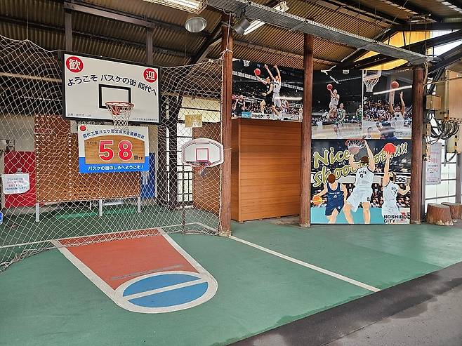 | ▲ JR 노시로역 농구대 만화영화 "슬램덩크"의 모티브가 된 노시로 공고가 근처에 있어 농구 자유투 체험이 가능 합니다. |