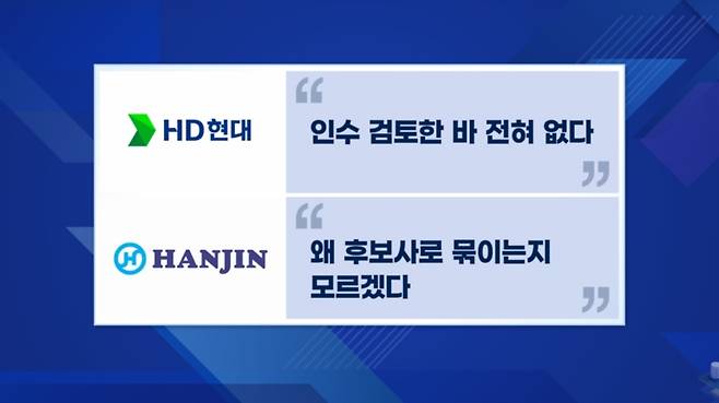 한진그룹은 자신들이 왜 후보사로 묶이는지 모르겠다고 말했습니다.