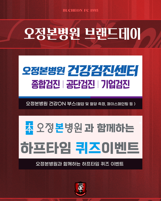 부천FC1995, 오정본병원 브랜드데이 7일 홈경기서 진행