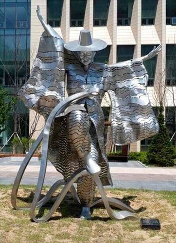 갓을 쓴 한복 차림 남성이 춤사위를 벌이는 형상으로, 지난 2014년 청사관리본부가 공모를 통해 1억 5000만원 들여 설치했는데, 즉각 흉물스럽다는 비판이 쏟아졌습니다.
