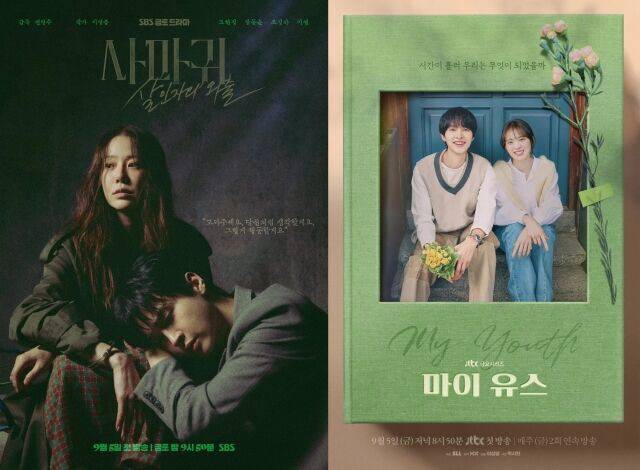 SBS 금토드라마 '사마귀: 살인자의 외출'과 JTBC 금요시리즈 '마이 유스'가 9월 5일 나란히 첫 방송을 시작하며 금요일 안방극장이 멜로와 스릴러 두 장르의 정면승부로 달아오르게 됐다.