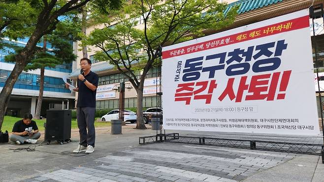 대구 시민 사회 단체에서 직무 소홀을 이유로 윤석준 대구 동구청장에 대해 감사원에 공익 감사를 청구했지만, 감사에 해당하지 않는다는 답을 받았습니다.