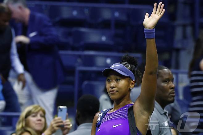 (뉴욕 AFP=뉴스1) 심서현 기자 = 4일(현지시간) 오사카 나오미가 미국 뉴욕 빌리진킹 내셔널 테니스센터에서 열린 US오픈 여자 단식 준결승에서 어맨다 아니시모바(9위·미국)에 패배한 뒤 코트 위에서 팬들에게 인사하고 있다. 2025.09.04